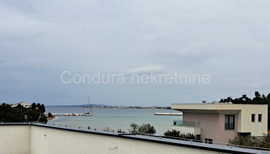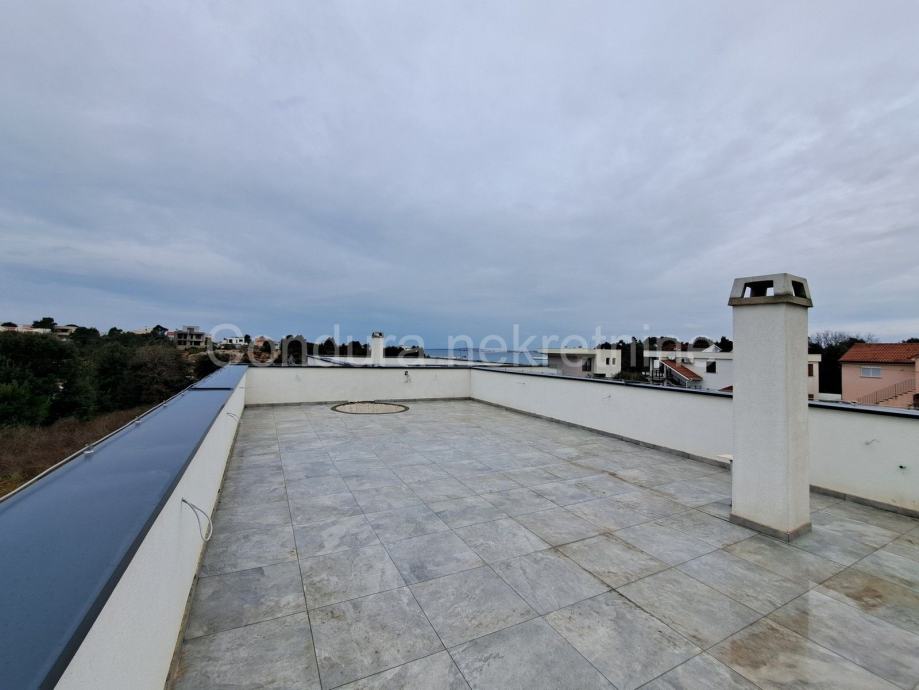 Prostrana krovna terasa površine 72 m2 ima prelijep pogled na more i okolicu.