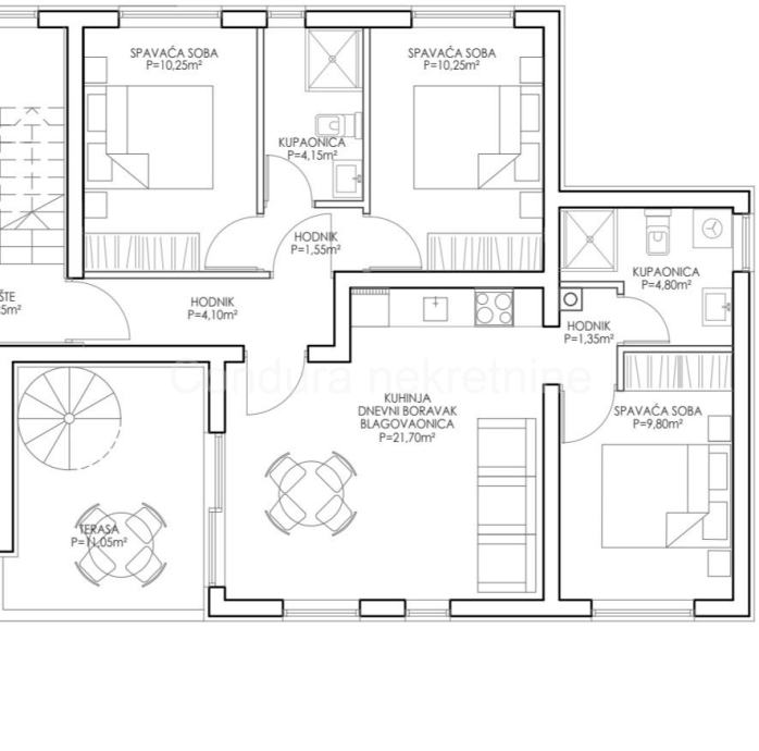 Neto korisna površina apartmana iznosi 97,70 m2.