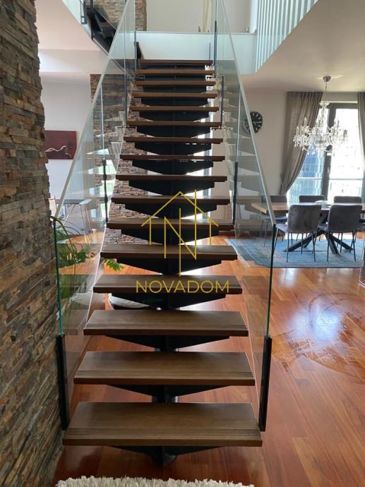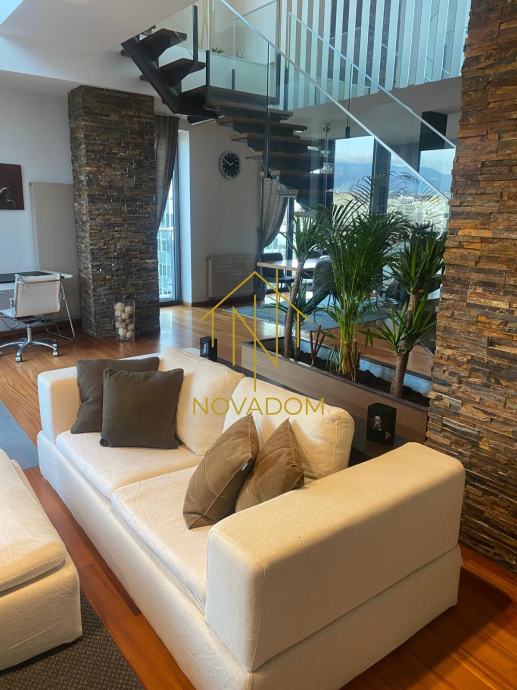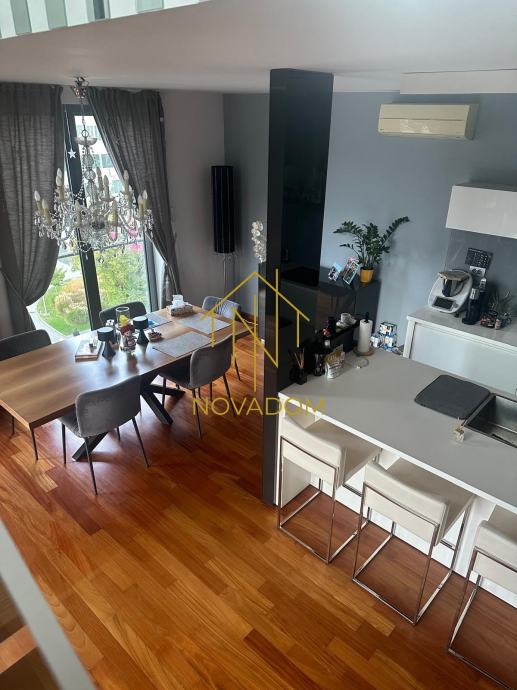 Širi centar, Radnička cesta, odmah do Green Golda-atraktivna lokacija. Prodaje se luksuzan dvoetažan peterosoban stan od 190 m2 s loggiom na 5. i 6. katu odlično održavanje zgrade novije gradnje (2008.) s liftom. Zbog velikih staklenih stijena i visokih stropova, stan je veoma svijetao i prostran.