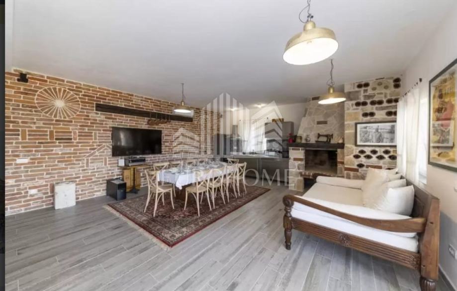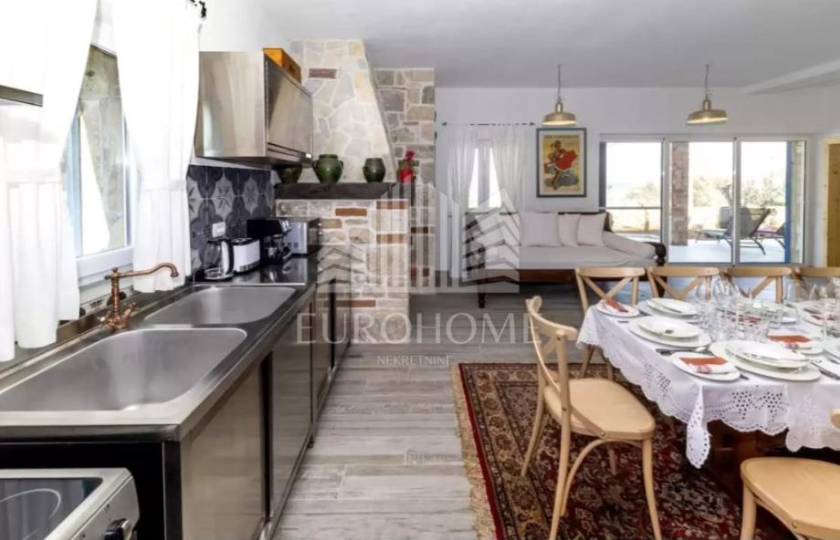 U gradnji i rekonstrukciji korišteni su visoko kvalitetni materijali, sve s ciljem očuvanja baštine i visoke funkcionalnosti. Sva je obložena kamenom izvana i iznutra a zidovi su debljine 60cm. Uređena je u autohtonom, rustikalnom stilu s puno jedinstvenih i zanimljivih detalja, a opet je maksimalno opremljena sa svim potrebnim uređajima: klimatizacija cijele kuće, perilice, grijači ručnika u kupaonicama, veliki hladnjaci, solarno grijanje vode, tri sefa, plave aluminijske škure, toplinska izolacija…