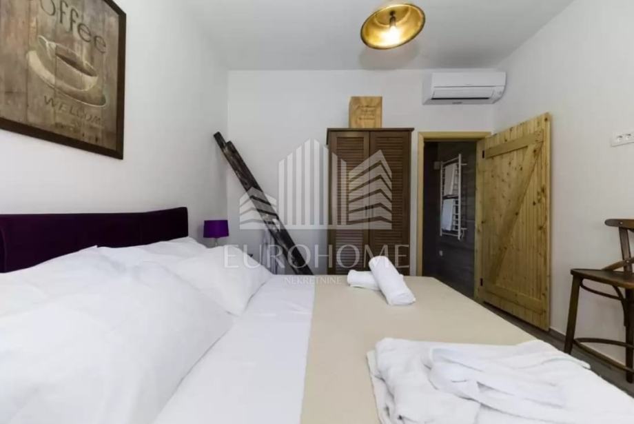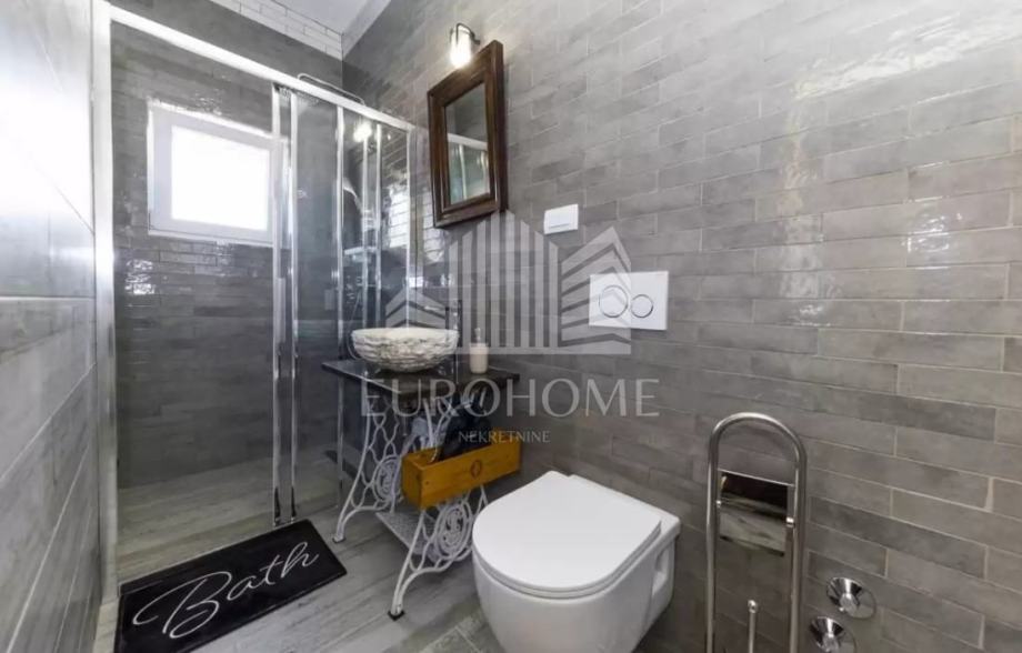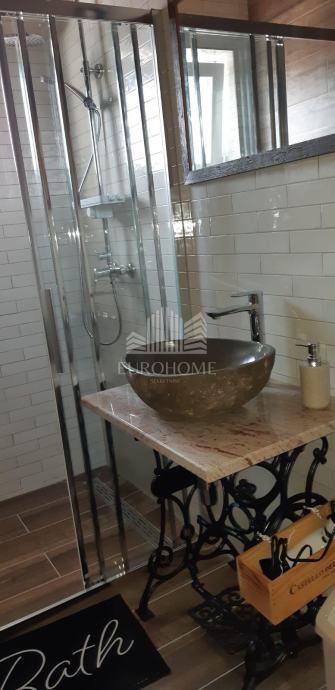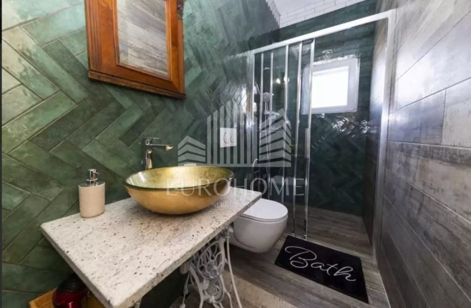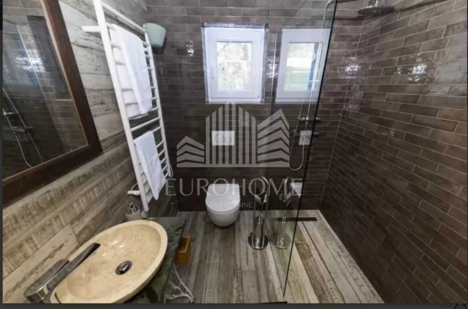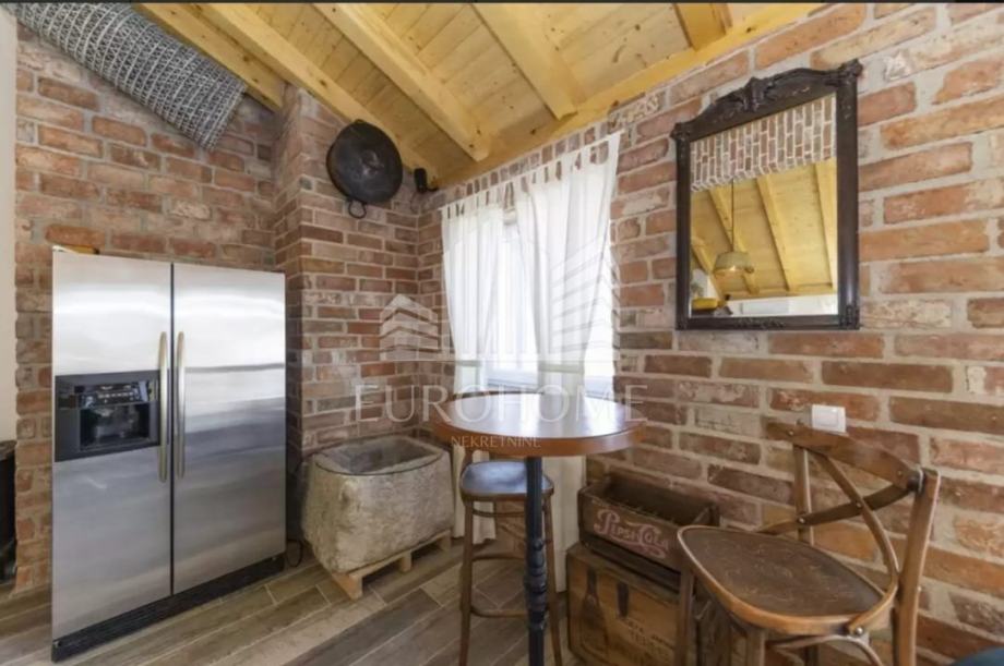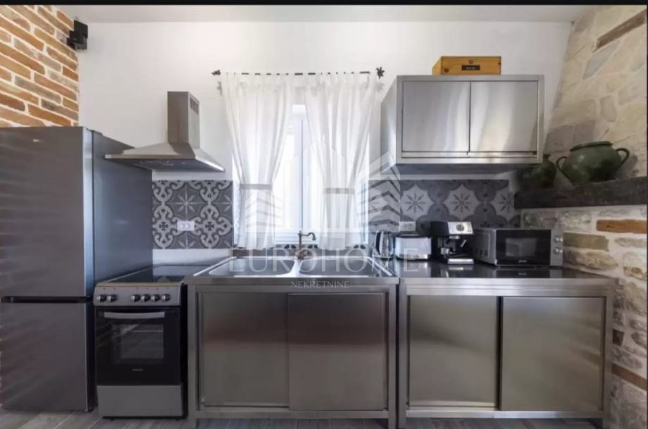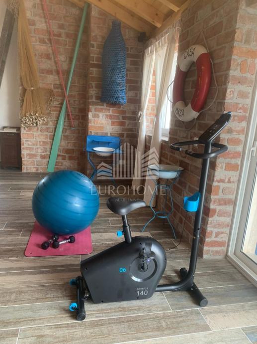 Uz kuću se nalazi dodatna kućica od 19m2 sa potpuno opremljenom kuhinjom(hladnjak, ledomat, višenamjenski aparat, perilica za suđe, perilica za rublje, Express mašina, štednjak...) s kaminom i wc-om. Ispred kućice smjestio se bazen 7x3m.