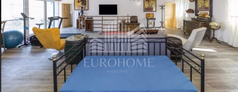 Vila se prodaje sa svim namještajem i opremom . U gornjem dnevnom boravku s teretanom su stolni tenis, stolni nogomet, električni profesionalni pikado, električni bicikli, traka za trčanje i Yoga oprema. Obje dnevne sobe imaju kauč na razvlačenje i velike zidne televizore. Zvučni sustav BOSS je u cijeloj kući.