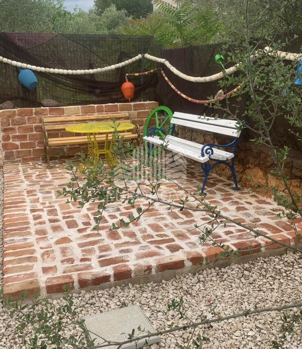 U lijepo uređenom i ograđenom dvorištu posađeno je dvadesetak maslina starih dvadeset godina. Prostrano dvorište nudi obilje mjesta za vanjsko druženje i opuštanje. Vlasnicima ovog prekrasnog imanja osigurana su i parkirna mjesta što je izuzetno praktično, posebno tijekom ljetnih mjeseci kad je mjesto popularno među turistima. Ova vila ima uspješan posao na platformi Bookong što je izvrsna prilika za ulaganje; kombinira luksuzan odmor s potencijalom za stabilan prihod. Vila je kategorizirana sa četiri zvjezdice i može primiti do 12 gostiju. Uz vilu ide i vez za brod dužine 7-8 m u obližnjoj lučici. Iza kuće u kutu nasuprot ljetne kuhinje postoji mogućnost izgradnje saune i jacuzija.