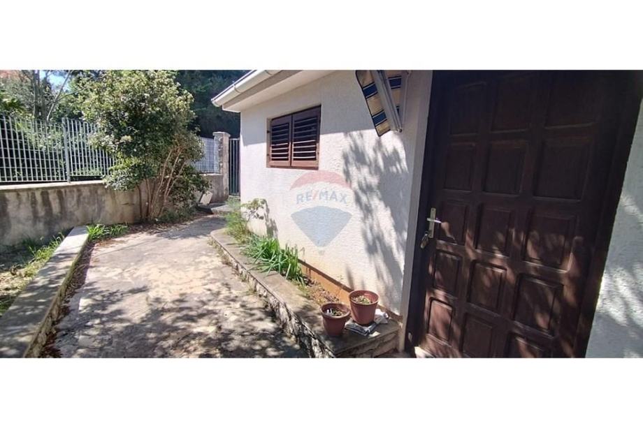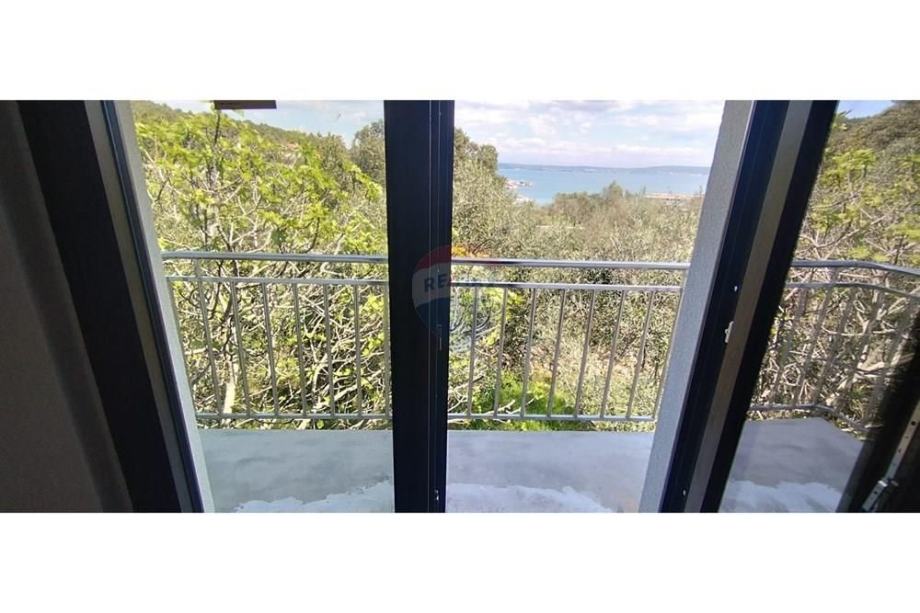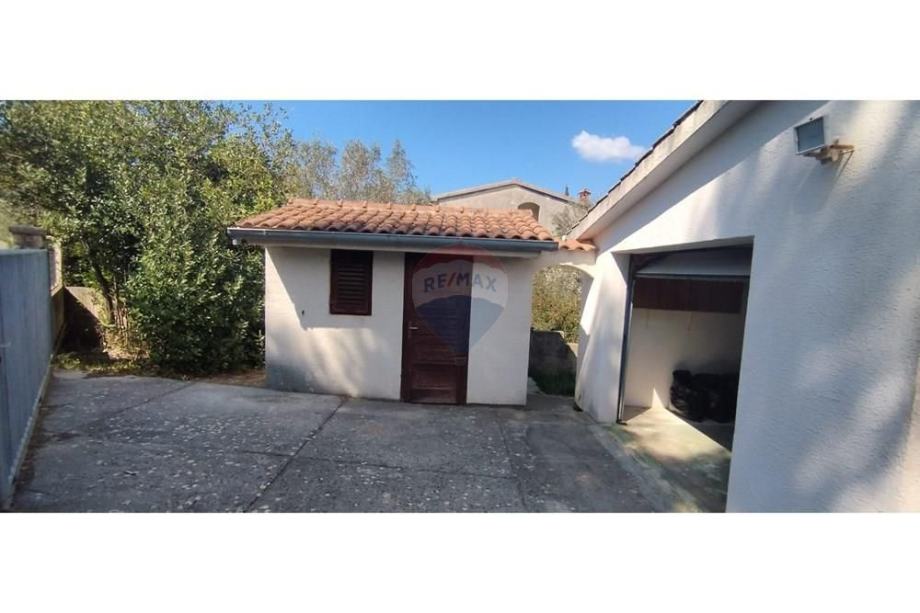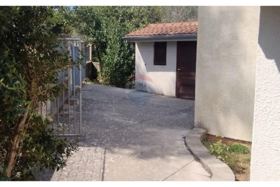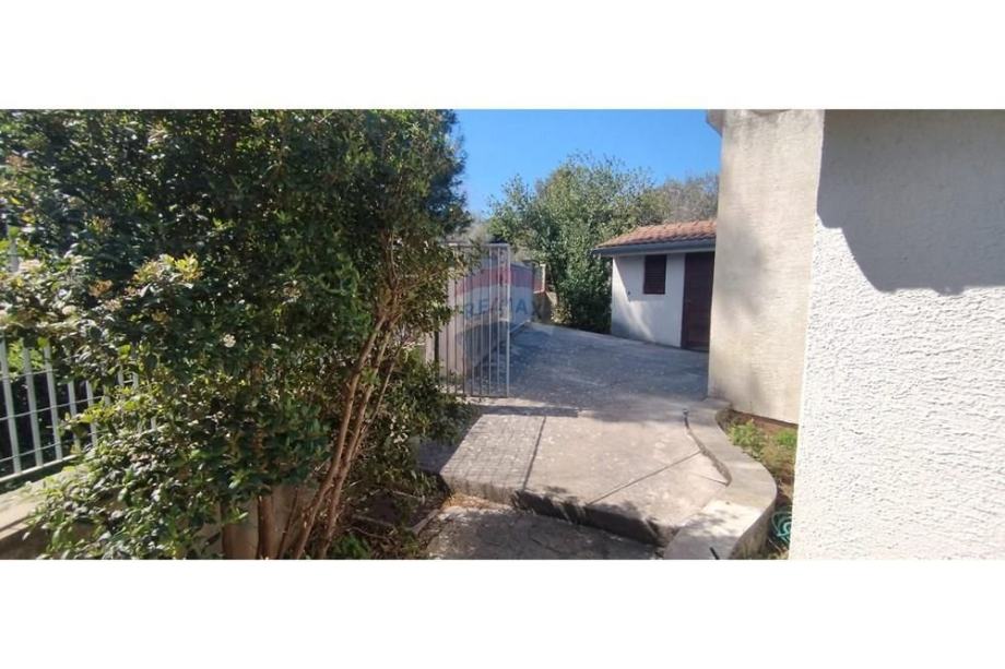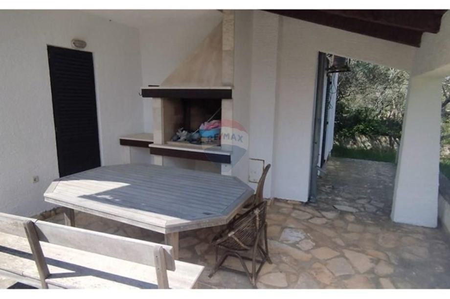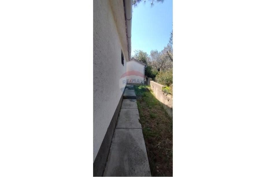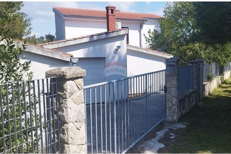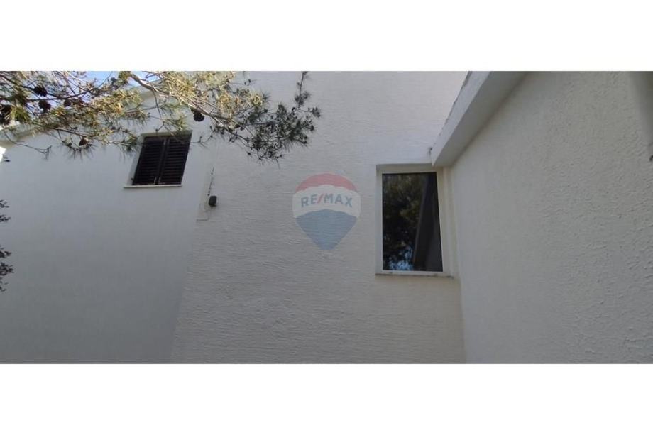 Obiteljska kuća katnica, površine 156m2, garaža 40m2, ljetna kuhinja (jednosobni objekt pored glavnog ulaza) 30m2, plus okućnica sa maslinikom i parkingom ukupne površine oko 750m2. Kuca je projektirana i građena krajem 1980-ih. Redovito održavana, legalna, uredni dokumenti, renovirana 2024. U prizemlju su kuhinja, dnevna soba, kupaonica i natkrivena terasa sa kominom. Na katu su tri spavaće sobe, kupaonica, balkon i terasa. Nalazi se 70m od mora, zemljište ispred nije građevinsko (maslinik) tako da kuca ima otvoren pogled na more.