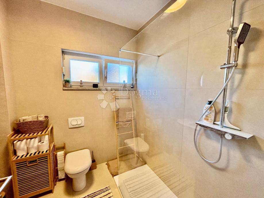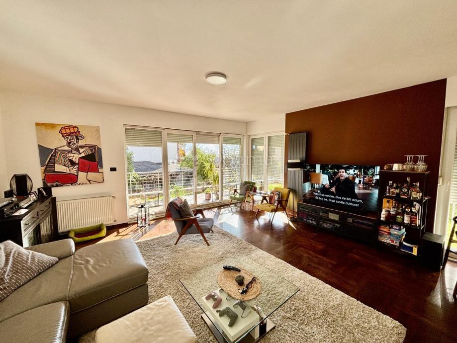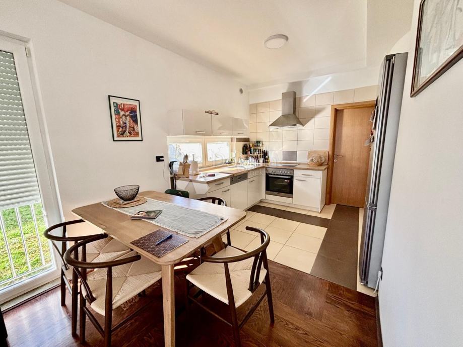 Stan je 2025. godine dodatno uređen, s renoviranim kupaonicama i pažljivo biranom opremom. Kuhinja je moderno koncipirana, opremljena kvalitetnim aparatima te upotpunjena praktičnom, skrivenom ostavom. Spavaće sobe su komforne i svijetle, prilagođene suvremenom obiteljskom načinu života.