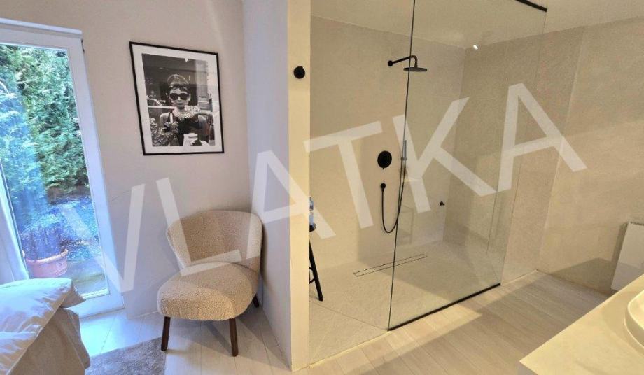 2) vešeraj, kupaonica s dvostrukim tušem, spavaća soba s ensuite kupaonicom i garderobom te izlazom u predivan privatan vrt površine 30 m2.
