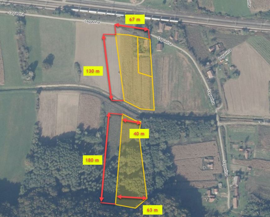 Zemljište se nalazi uz prugu Križevci-Koprivnica, u neposrednoj blizini željezničke stanice Lepavina. Nekretnina se sastoji od 3 čestice, od kojih se jedna čestica nalazi u građevinskoj zoni, jedna čestica u poljoprivrednoj zoni te treća čestica u zoni šume.