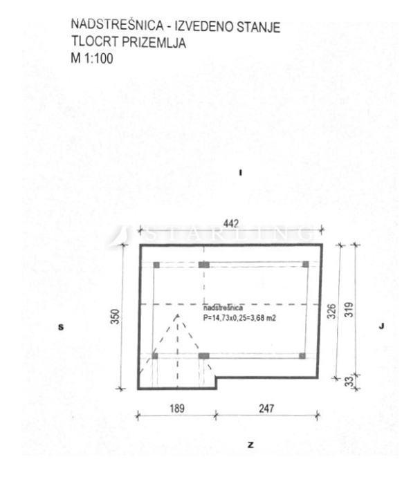 Na parceli se nalazi još gospodarska zgrada koja se koristi kao spremište, površine 67 m2 te nadstrešnica za automobile površine 42 m2.