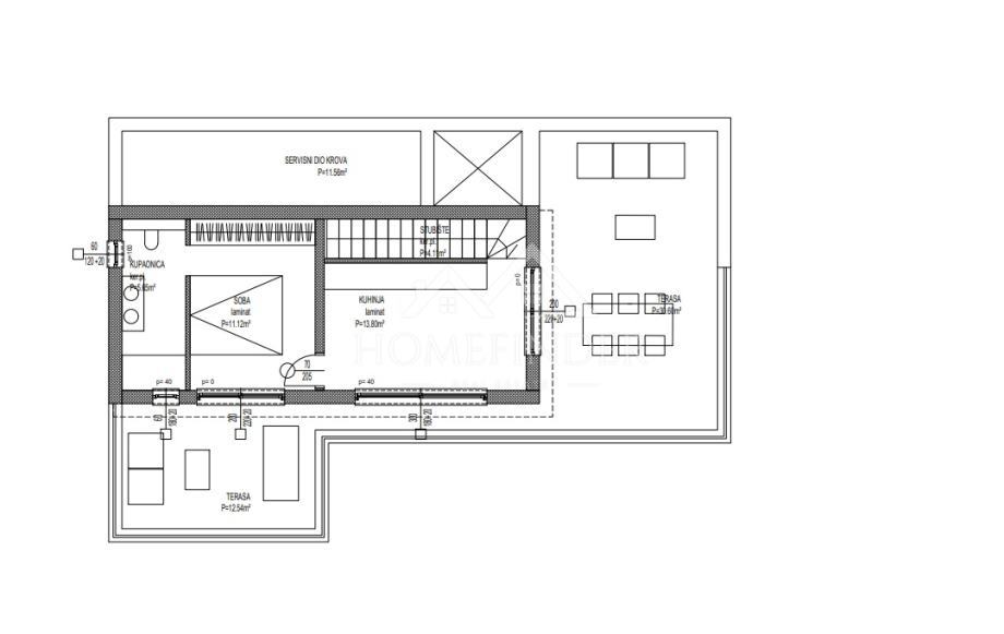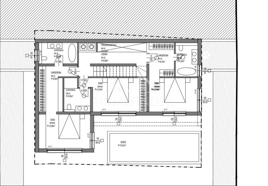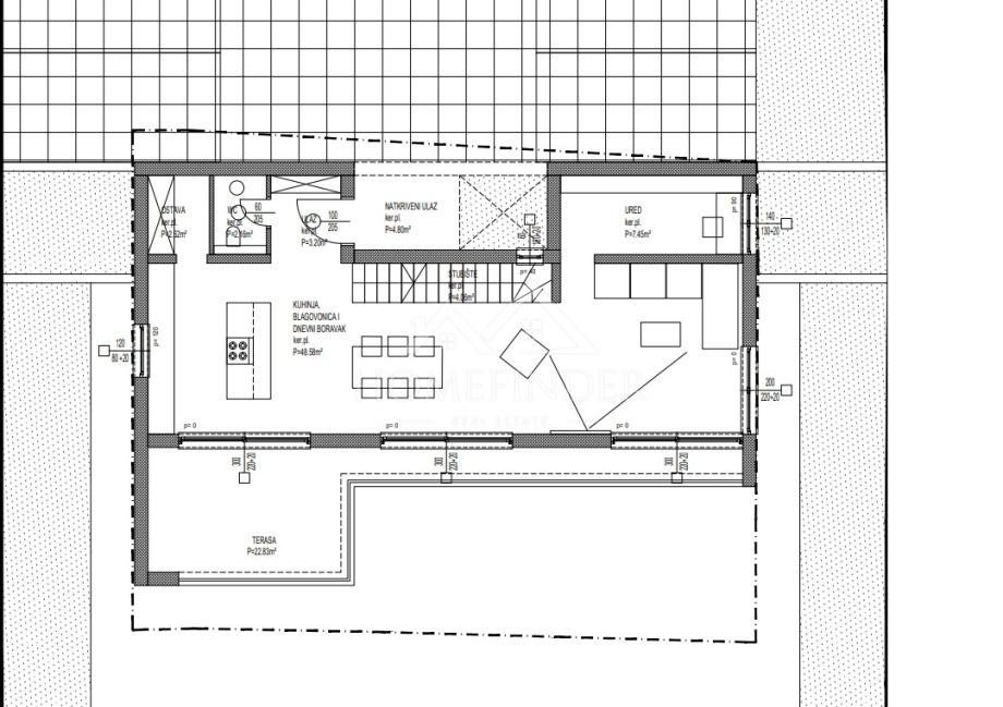 - Projekt vile: 4 spavaće sobe, prostrani dnevni boravak s kuhinjom i blagovaonicom, terase s južnim i jugoistočnim orijentacijama, moderne