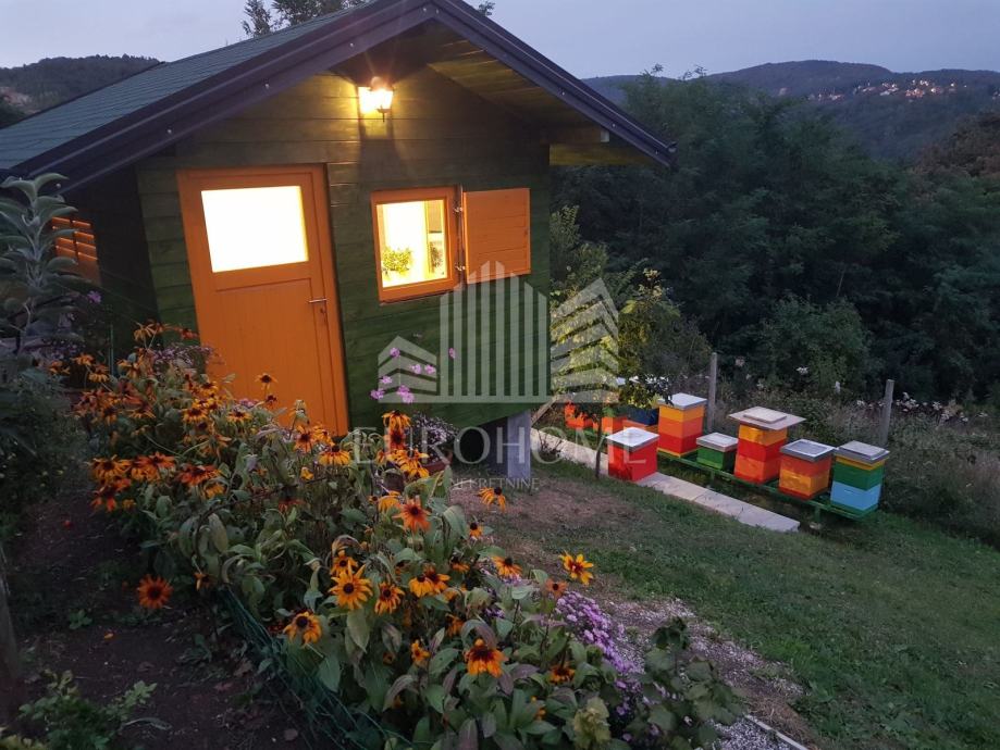 Na parceli se nalazi novoizgrađena drvena kućica površine 14m2, s provedenom strujom. Kućica ima kvalitetnu izolaciju, idealna je za vikend boravak ili kao spremište. Vlasnicima je služila kao apiinhalacijska komora.