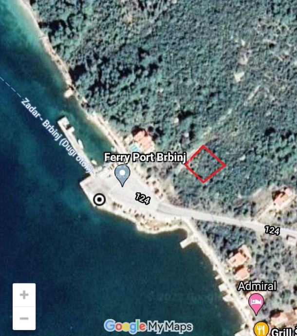 Zemljište se nalazi na Dugom Otoku, k.o. Brbinj, 50 metara od mora,u blizini trajektnog pristaništa.