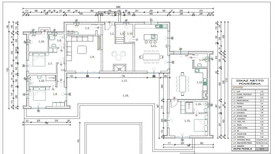 Kuća 210 m2, bazen 8,50 m x 5,50 m - 40 m2 te pomoćna zgrada 49,50 m2.