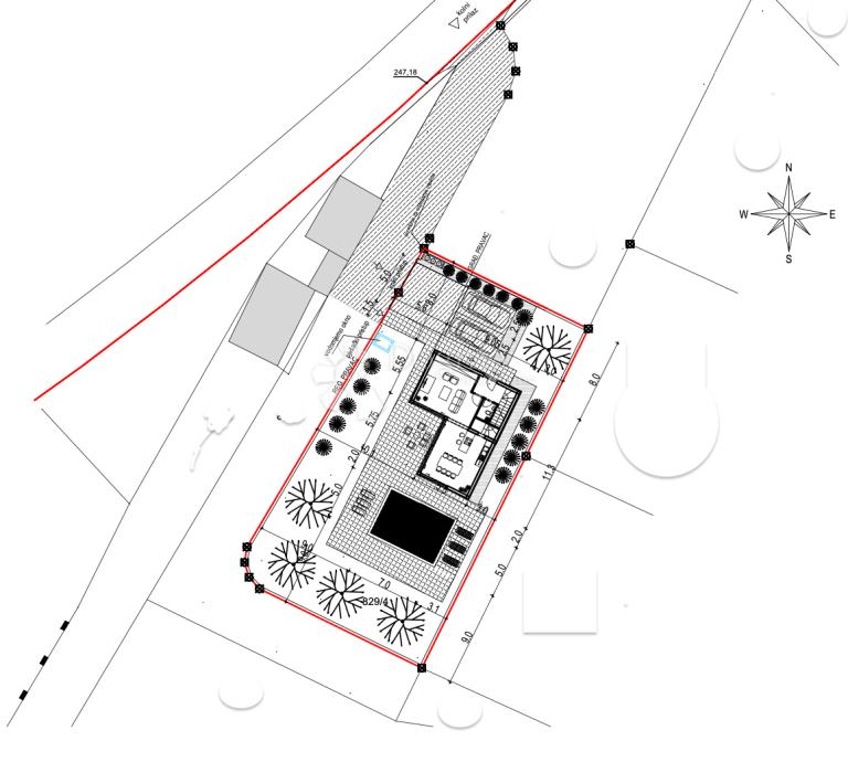 *Prostrani Dizajn: S ukupnom površinom od 132,66 m2, uključujući prostrani bazen od 29,25 m2, ova parcela omogućuje vam da stvorite udoban dom po vašim željama.