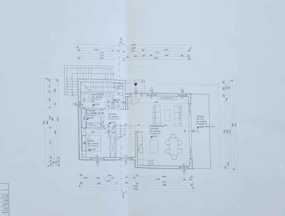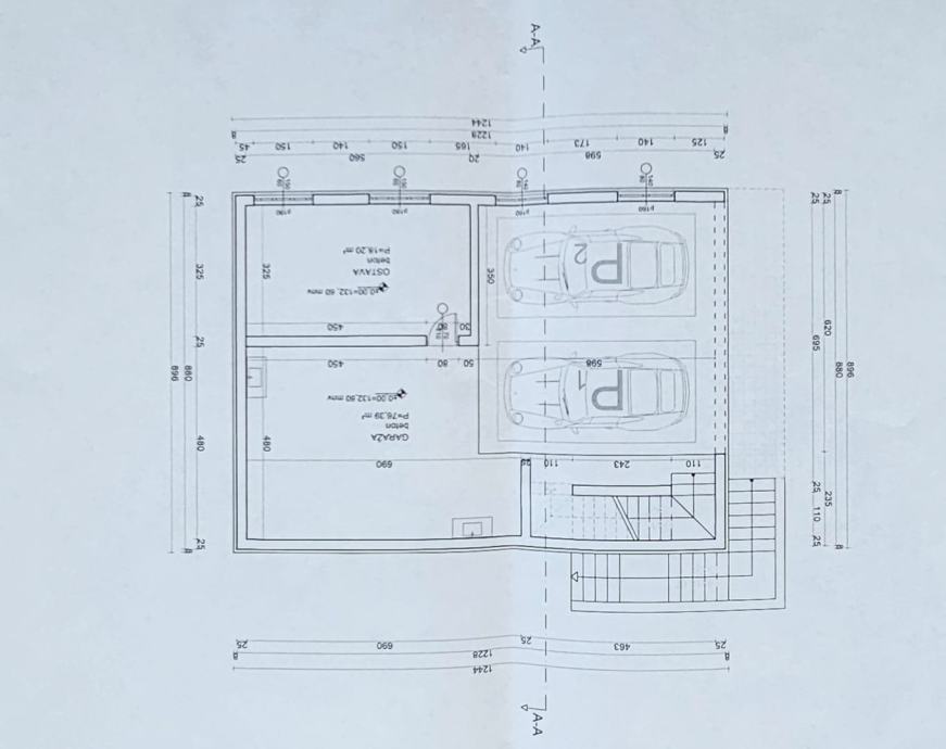 U Suterenu je predviđena garaža s 2 parkirna mjesta i ostavom, a iznad stan koji se prostire na 2 kata.