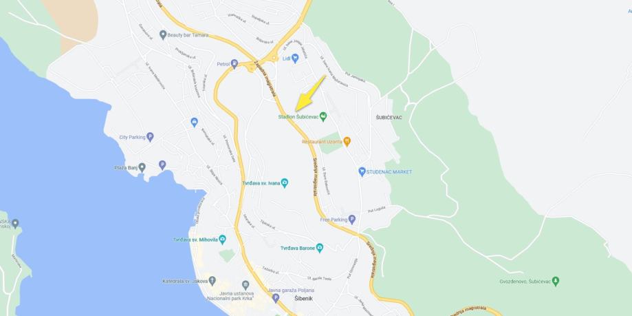 Nekretnina se nalazi u sjevernom dijelu grada Šibenika, naselje Šubićevac na krajnjem sjevernom dijelu Ulice Đure Đakovića u okruženju nogometnog stadiona i višestambenih zgrada. Javni i društveni sadržaji nalaze se u naselju. Pristup je moguć dvotračnom dvosmjernom asfaltiranom prometnicom kojom ima brzi pristup ostalim dijelovima grada. Predmetna nekretnina je zemljište IS namjene koje se sastoji od jedne katastarske čestice nepravilnog oblika, izdužene u smjeru sjeverozapad-jugoistok. Teren zemljišta je u padu od zapada prema istoku. Prema GUP-u Grada Šibenika nekretnina se nalazi na površini infrastrukturnih sustava. Cijela čestica je unutar obuhvata PUP-a Provedbeni urbanistički plan stambene i rekreacijske zone Šubićevac u Šibeniku-II izmjene i dopune.