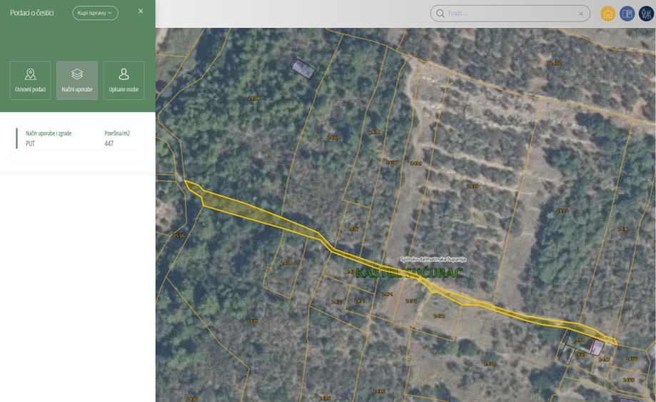 - Sustav će prikazati granice čestice i vašu točnu lokaciju