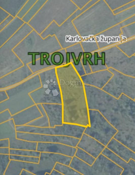 Prodajemo zemljište kod Josipdola u Trojvrhu veličine 10893 m2. Sastoji se od dvije katastarske čestice međusobno spojene i svaka ima pristupni put. Na zemljište se nalazi nešto šume i niskog raslinja.