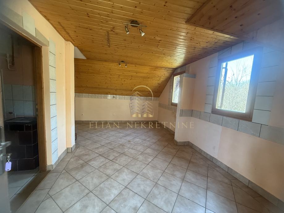 1.- gornji kat (potkrovlje)- otvoreni prostor (garsonjera) sa odvojenom prostorijom u kojoj je kuhinja i uređena kupaonica za tuš kabinom.