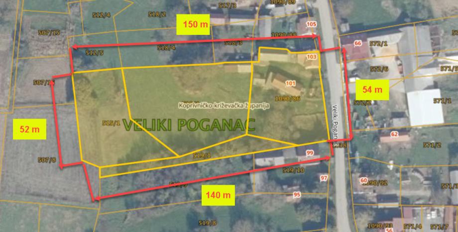 U mjestu Veliki Poganac nudimo na prodaju veliko poljoprivredno gospodarstvo koje obuhvaća prostrano zemljište i različite objekte smještene u građevinskoj zoni. Ukupna površina čestica iznosi 8.797 m2, a na toj površini smješteni su objekti koji ukupno zauzimaju 305 m2. Tu se nalaze spremište, garaža, štala, te obiteljska kuća površine 105 m2.