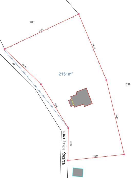 Na parceli se nalazi legalizirana kuća površine 74 m2 (trenutno neuseljiva), a u dvorištu je bunar. Ispred zemljišta nalazi se gradski priključak vode i priključak struje, što dodatno povećava mogućnosti gradnje i uređenja.