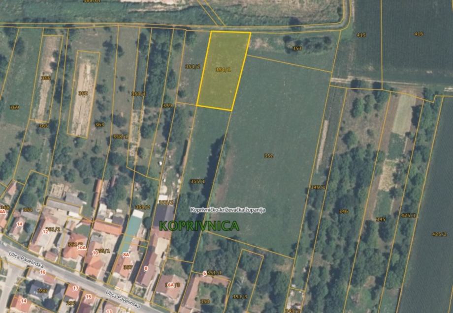 Prodaje se zemljište ukupne površine 4010 m², u blizini Pavelinske ulice, Koprivnica.
