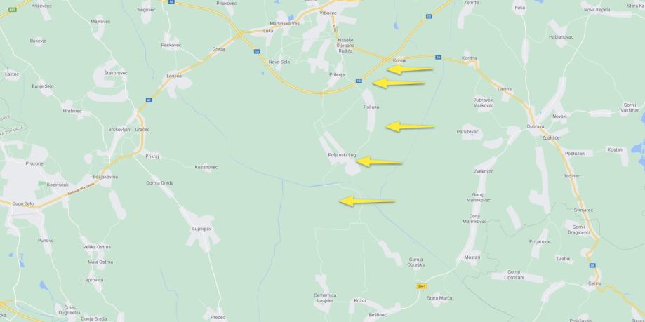 Predmetna nekretnina je zemljište kojeg čini obuhvat sedam nekonsolidiranih čestica nepravilnog, pretežno izduženog oblika ukupne površine 21192 m². Teren zemljišta je ravan. Parcele su neograđene, pojedine (k.č. 2007, 2008, 2685, sve k.o. Poljanski lug) sa pristupom makadamskim poljskim putevima, dok su ostale bez pristupa na javnu prometnu površinu. U naravi su livade, dijelom zarasle u gustu vegetaciju te pošumljene površine. Lokacija nije komunalno opremljena i na predmetnom obuhvatu nema izvedenih priključaka. Nalaze se u istočnom dijelu Zagrebačke županije, na području grada Vrbovca pokraj prigradskog naselja Poljana, oko 4,5 km južno od grada i izvan prstena gradske obilaznice. Parcele su od izgrađenog dijela naselja udaljene od 400 - 1200 m, dio ih je istočno i jugoistočno od Poljane, dvije su u neposrednom susjedstvu govedarske farme između naselja Poljana i Poljanski lug, dok je jedna u šumskom području uz rub Varoškog luga (šumovito područje uz tok Glogovnice zaštićeno od 1982. godine). Prema PPUG Vrbovec dio čestica predmetne nekretnine se nalaze u zoni poljoprivredne površine planske oznake P3 - ostala obradiva tla (12520 m²), dijelom u zoni planske oznake PŠ - ostalo poljoprivredno i šumsko zemljište (2396 m²), dijelom u zoni planske oznake Š1 - šuma gospodarske namjene (795 m²) te dijelom u zoni planske oznake I - gospodarska namjena (5481 m²). Na području oznake P3 moguća je izgradnja gospodarskih građevina u funkciji obavljanja poljoprivredne i stočarske djelatnosti, te uzgoja ribe i životinja (farma) u ovisnosti o veličini posjeda čiju minimalnu površinu definiraju vrsta i intenzitet poljoprivredne djelatnosti. Na području oznake PŠ osim poljoprivredne proizvodnje mogu se odvijati sve ostale aktivnosti sukladne planskoj namjeni prostora. Površine koje nisu namijenjene poljoprivrednoj proizvodnji mogu se pošumiti. Područje oznake Š1 namjenjeno je prvenstveno za gospodarstvo u smislu eksploatacije drva za proizvodnju drvnih proizvoda. Predmetna k.č. 583, k.o Poljana je najvećim dijelom u gospodarskoj zoni. U takvoj zoni je moguće graditi industrijske, skladišne, upravne i trgovačke prostore, a ne smiju se graditi građevine za stanovanje. Izgrađenost građevne čestice u zoni gospodarskih djelatnosti ne može biti veća od 60 % s tim da se 20% građevne čestice mora urediti kao zelena površina proizvodnog kompleksa. Etažna visina građevina ne može biti veća od podruma ili suterena, prizemlja, dva kata i potkrovlja (Po/S+P+2+Pk). U naravi je predmetna čestica pošumljena površina omeđena kanalima na istoku i na zapadu bez pristupa javnoj prometnoj površini. Spada u neizgrađeno područje za koje je propisana obveza izrade UPU-a.