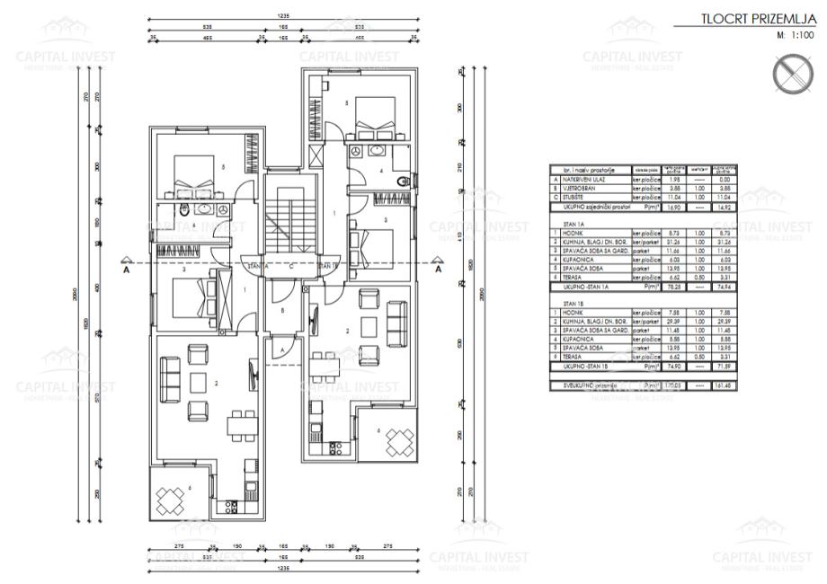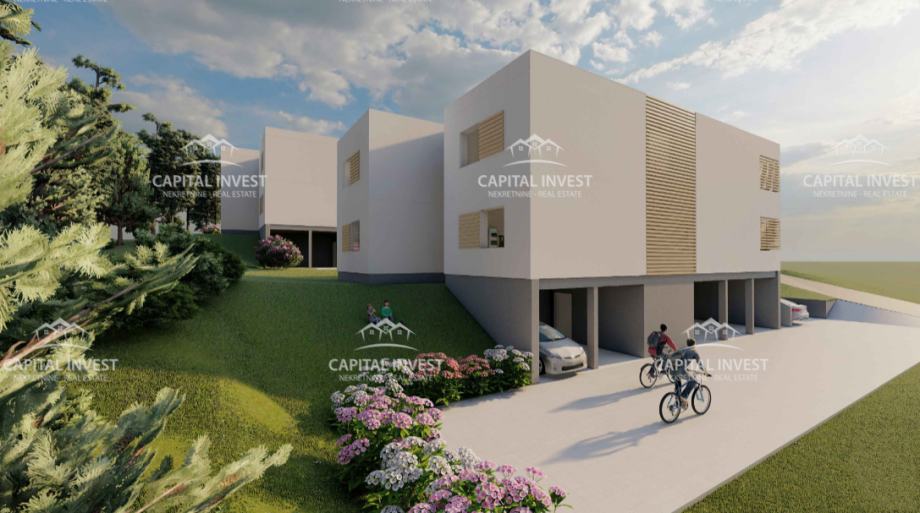 Prodaje se građevinsko zemljište s izrađenim projektom i pravomoćnom građevinskom dozvolom za izgradnju moderne stambene zgrade koja se sastoji od četiri stambene jedinice u naselju Vinkuran - dvije u prizemlju i dvije na prvom katu. Prema projektu, dva su stana površine 74,59 m2, a druga dva 71,54 m2. Svaki stan obuhvaća dvije spavaće sobe, kuhinju s blagovaonicom, dnevni boravak i kupaonicu, a svakom pripada i spremište te natkriveno parkirno mjesto. Projekt je osmišljen tako da kombinira funkcionalnost, udobnost i suvremen dizajn, uz maksimalno iskorištavanje prostora i optimalnu orijentaciju stambenih jedinica. Ova nekretnina predstavlja izvrsnu investicijsku priliku za gradnju stambene zgrade namijenjene obiteljskom stanovanju ili turističkom najmu.