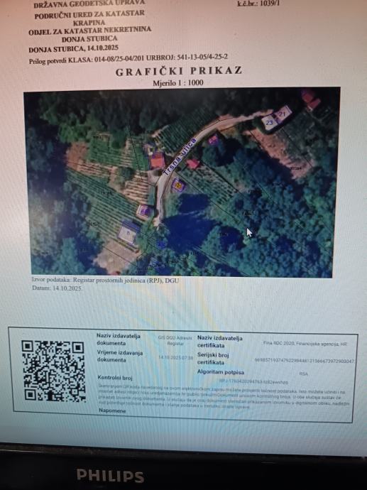 Fronta uz asfaltnu cestu je 30 metara a ukupna površina zemljišta je 2322 m2.