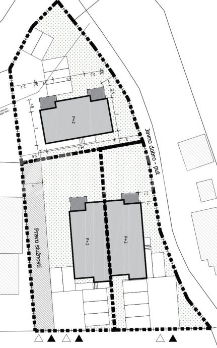 Prodaje se građevinsko zemljište koje se sastoji od dvije čestice, na kojima je moguća izgradnja jednog dvojnog objekta sa 6 stanova i jednog samostojećeg s 3 stana, katnost P+2.