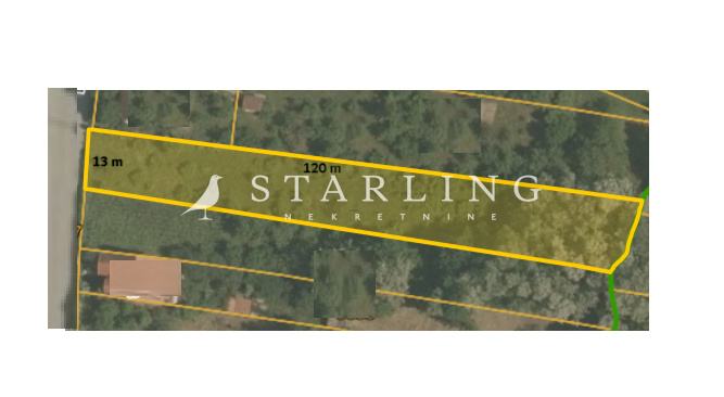Zemljište je na padini nagiba većeg od 5 stupnjeva i dimenzija oko 13 m dužine uz cestu i 120 m dužine u dubinu.