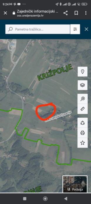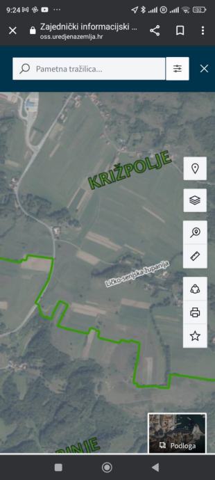 Zemljište se nalazi na 1 km od ulaza/izlaza na autoput,izlaz Brinje,sa pogledom na polja i vijenac Male Kapele.