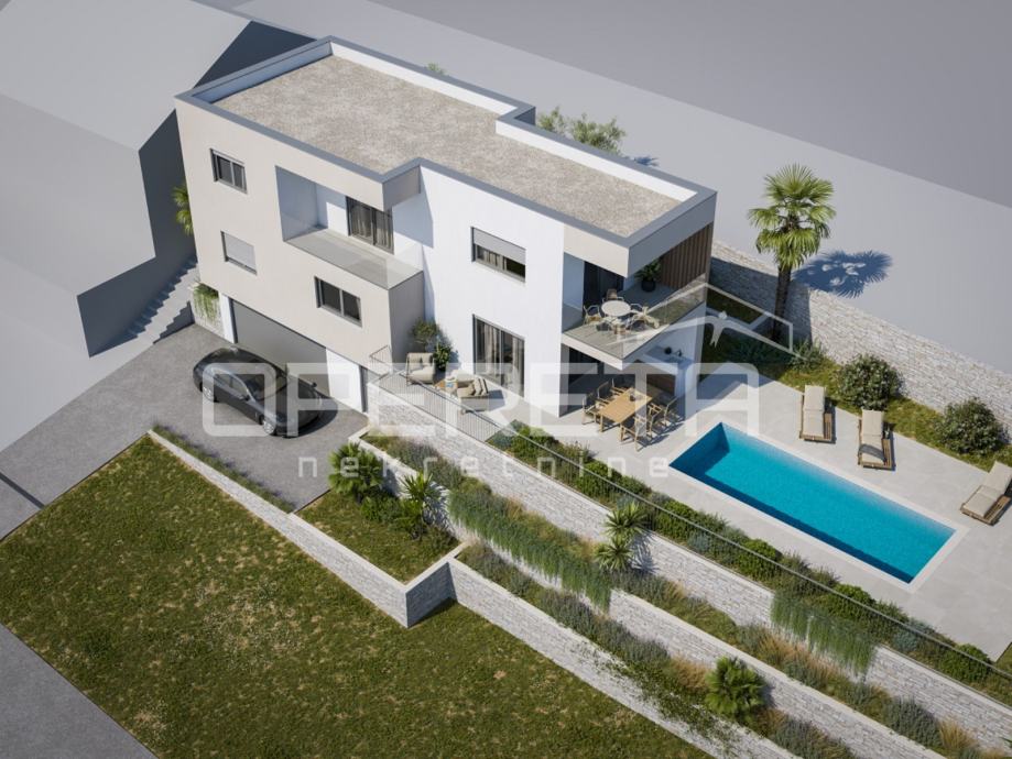Parcela dolazi s pravomoćnom građevinskom dozvolom izdanom u lipnju 2024. godine, čime je omogućen brz i nesmetan početak gradnje. Planirani projekt predviđa modernu stambenu građevinu bruto površine 178,46 m², koja će se prostirati na tri etaže – podrum, prizemlje i kat. Dizajn zgrade obuhvaća ravni krov i suvremeni arhitektonski izričaj, čineći je idealnim spojem funkcionalnosti i estetike. U sklopu projekta predviđen je bazen pravokutnog oblika smješten istočno od kuće, čime se stvara privatna oaza za opuštanje.