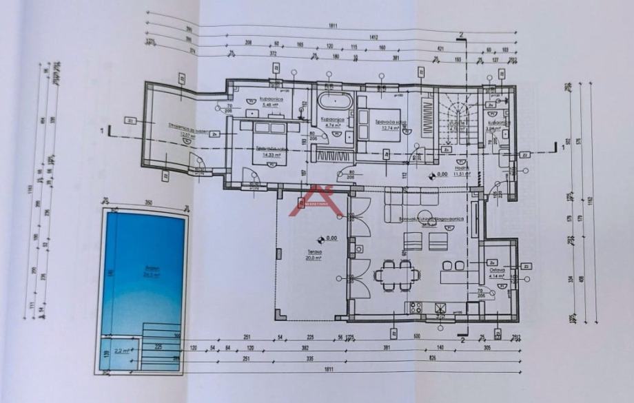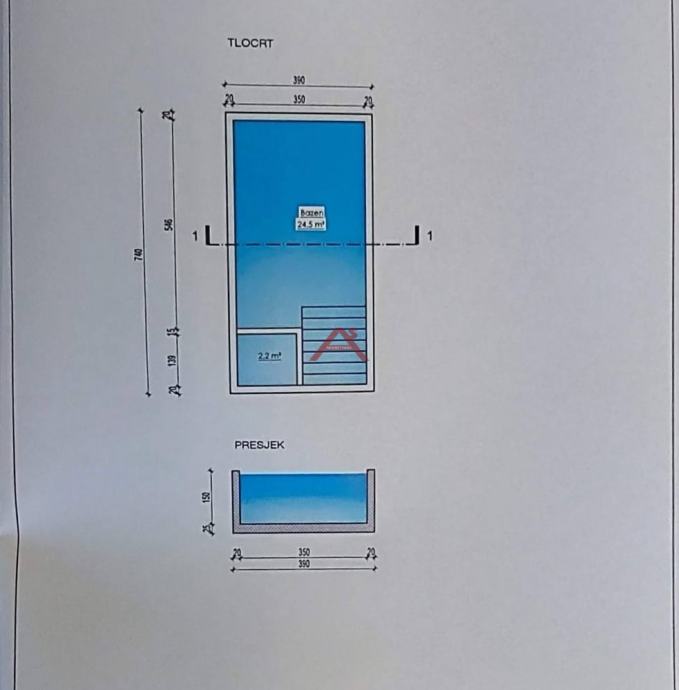 - Bazen veličine 7,40 X 3.90 m u naravi 24,5 m2