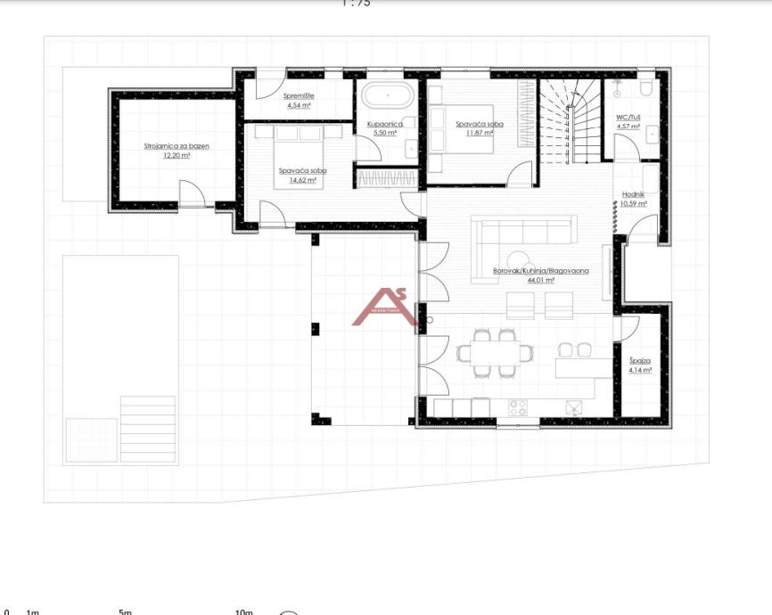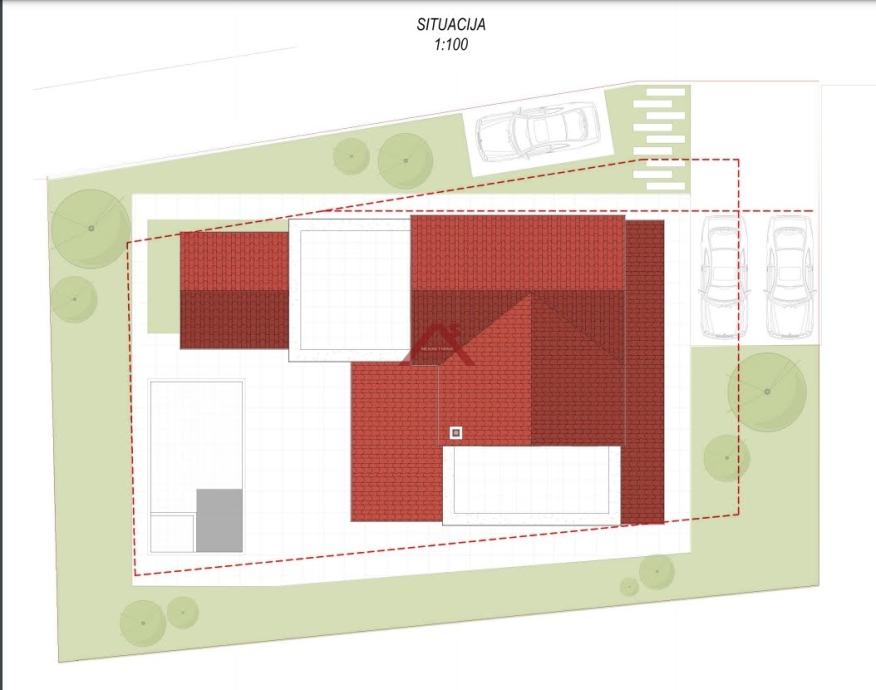 Po projektu kuća je na 2 etaže sa 4 spavaće sobe i 5 kupaonica. Buduća nekretnina vlasniku donosi veliki prihod kroz čitavu godinu i dobiva visoke ocjene.