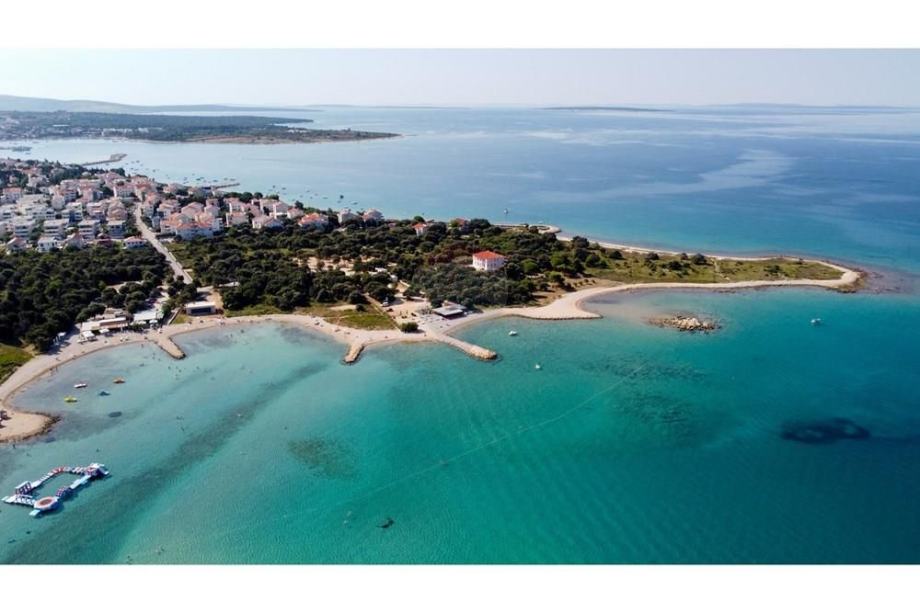 Ova šljunčana plaža smještena je u plitkoj uvali na samom sjeverozapadnom rubu Novalje na otoku Pagu. Ovo je najplića i najtoplija među novaljskim plažama, pa je pogodna za obitelji s djecom, plivače, neplivače i starije osobe. Do plaže se može doći pješice iz Novalje laganom šetnjom uz more koja traje oko 15-tak minuta ili automobilom kojeg možete ostaviti na obližnjem parkingu. Plaža je okružena borovom šumom koja osim posebne čari daje plaži i prijeko potreban hlad. U ponudi su restorani i kafići u kojima se možete skloniti od sunca ili okrijepiti. Plaža je idealna za sve uzraste koji mogu pronaći svoj kutak, te broji visoku posjećenost.