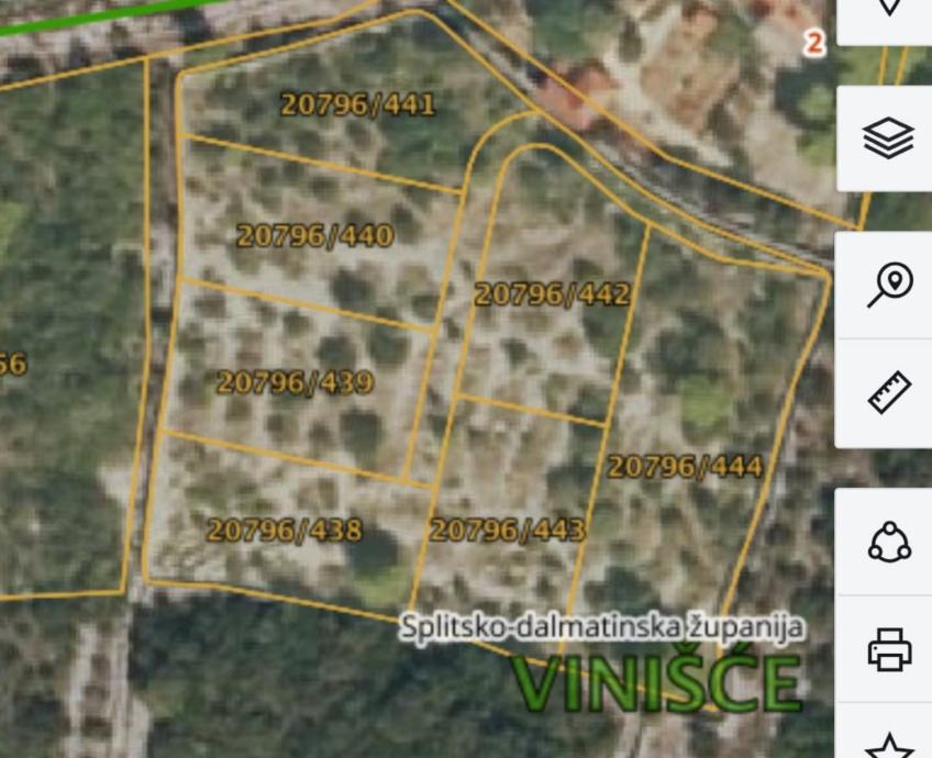 Zemljište je u vlasništvu privatne osobe i urednog vlasništva. K.O. Vinišće.