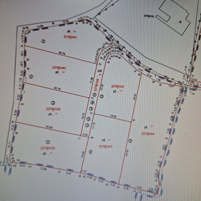 Veličine č.z. su: 591,587,587,587,561,560,1121, sve m2, te 2 puta 116 i 293, sve m2.