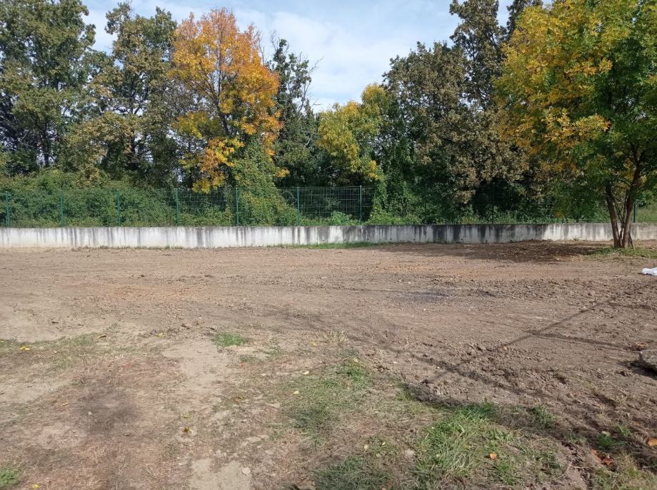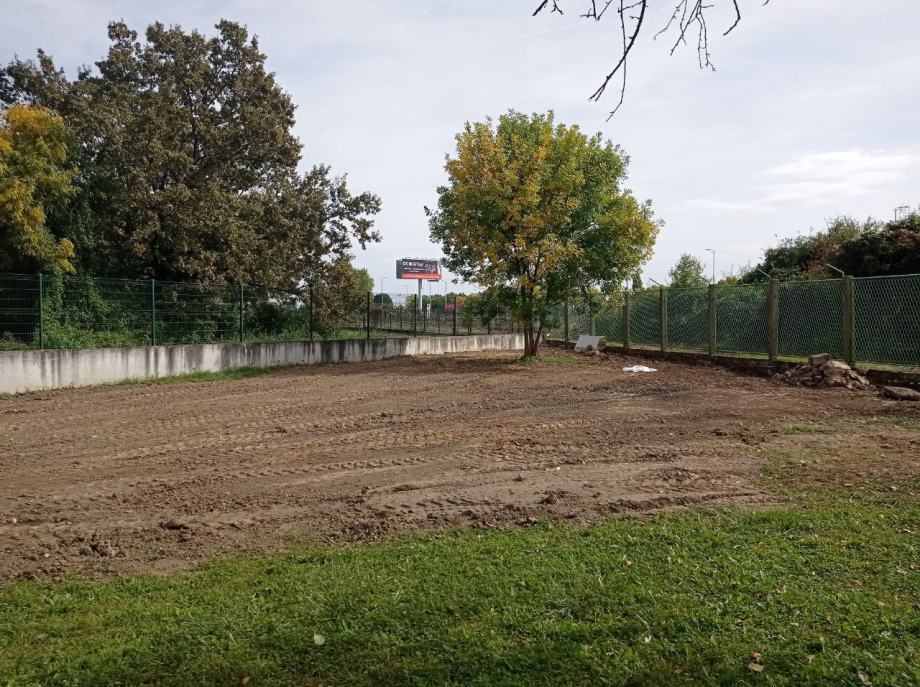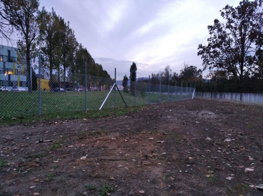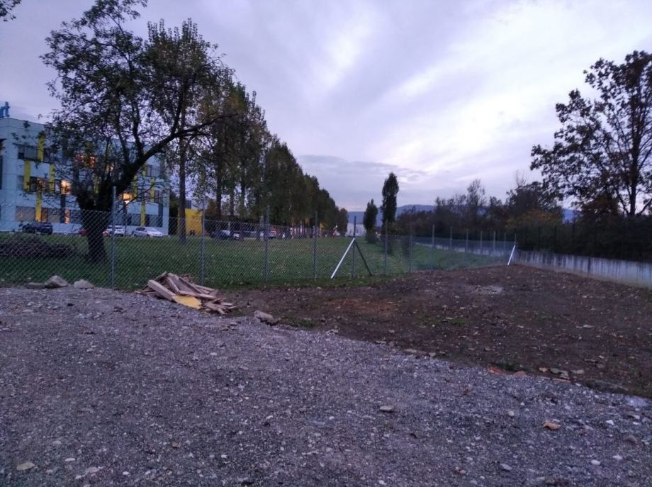 Parcela približno trokutastog oblika površine 461 m2, ravnog terena, ograđena.