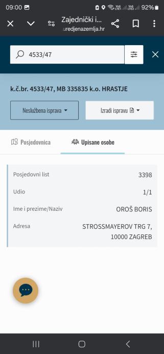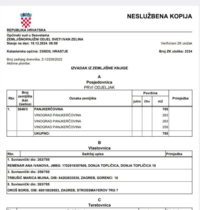 zk.ul.br. 2334, k.o. Hrastje, 263/785 dijela zk.č.br. 3648/3 Panjkerčovina,