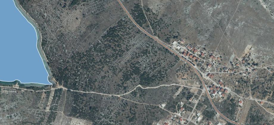 Na prodaju je zemljište na svega 200 metara od mora. Zemljište je relativno pravilnog, pravokutnog oblika i prostire se na površini od ukupno 10.083 m2.