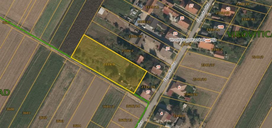 Na prodaju poljoprivredno zemljište s pristupom putu, 2297 m2, kč.2339/9 Batalija, prema Prostornom planu grada Virovitice stambena namjena.