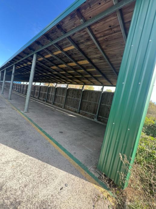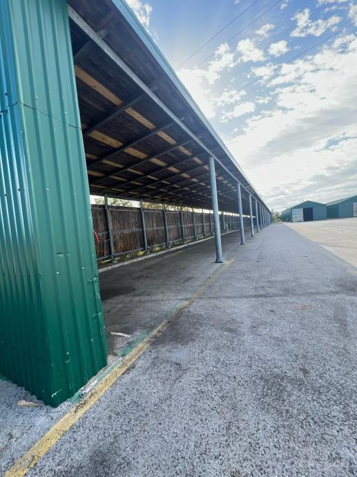 11,000 m² asphalted, including two halls of 250 m² each (total 500 m²) and a canopy of 640 m².