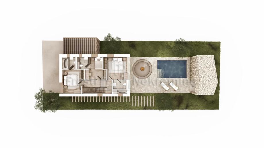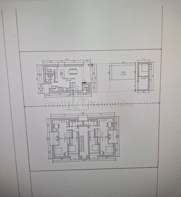 PRODAJE SE ATRAKTIVNO GRAĐEVINSKO ZEMLJIŠTE UKUPNE POVRŠINE 1089 m2 S VEĆ LEGALIZIRANIM NEDOVRŠENIM OBJEKTOM POVRŠINE 51 m2 I MODERNIM IDEJNIM PROJEKTOM ZA KUĆU KATNICU POVRŠINE 160 m2 I POMOĆNIM OBJEKTOM POVRŠINE 22 m2 S BAZENOM ( pool house ) ZA KOJI JE POTREBNO ISHODITI GRAĐEVINSKU DOZVOLU.