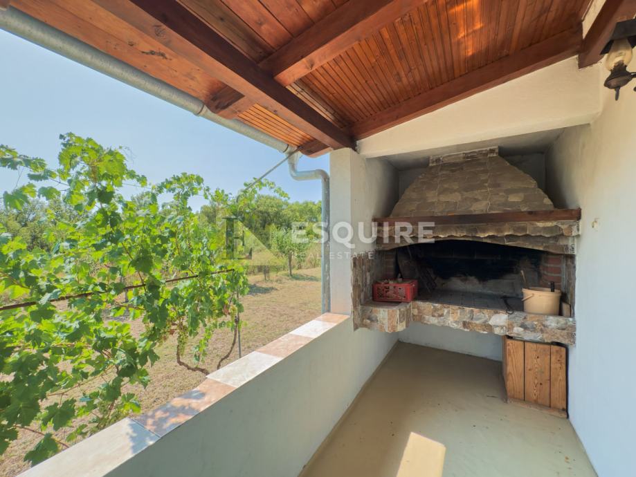 Velika okućnica obiluje vinovom lozom, maslinama i voćkama, uz dovoljno parkirnog prostora te mogućnost izgradnje bazena, saune, teretane ili drugih sadržaja.