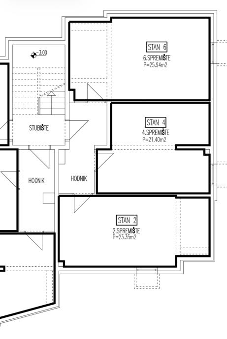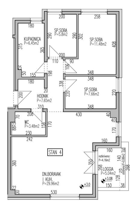 ** Stan na prvom katu – trostrana orijentacija (zapad–istok–jug)