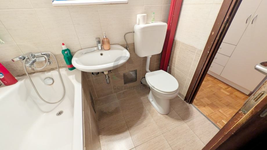 Zagreb, Špansko - stan od 76,67 m2. Nalazi se na drugom katu od četiri kata stambene zgrade bez lifta. Odličnog je rasporeda, u kojem su spavaće sobe odvojene od ostatka stana. Sastoji se od open space dnevnog boravka s blagovaonicom, velike kuhinje, dvije spavaće sobe, kupaonice s toaletom, odvojenog toaleta, ostave i hodnika. Dodatno mu pripada i spremište od 4 m2 na zadnjoj etaži zgrade. Stan je orijentiran dvostrano, na istok i zapad, što mu osigurava pregršt danjeg svjetla. Vodne instalacije, kao i vanjska stolarija u pvc, promijenjeni su 2008., dok je struja mijenjana 2022. godine. Grijanje je na gradsku toplanu.
