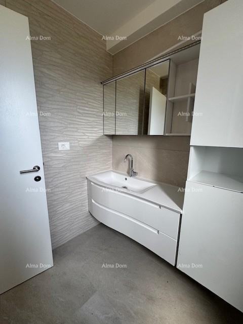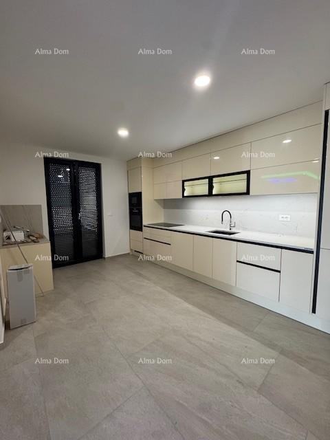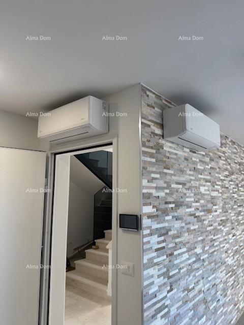 Dvoetažni stan s uređenim vrtom s dvije strane zgrade i grijanim bazenom (24 m²). Prodaje se potpuno namješten i opremljen, s podnim grijanjem i videoparlafonima.