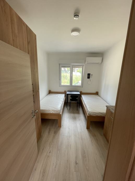 Sastoji se od 7 soba za smještaj vaših radnika . 4 velike sobe sa 8 kreveta / 2 sobe sa 2 kreveta i 1 soba sa 3 kreveta … 2 kuhinje , dnevni boravak ….. Također dostupan je i extra privatni parking za vozila prema potrebi za najam - Cjena je najma je 240 Eura / po radniku ( sve komunalije uključene ) .... Molim javite se na : 095 5766 885 / Ivan ... ili Conectionusa@yahoo.com Hvala Velika ))