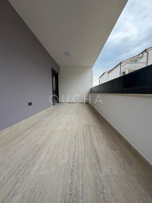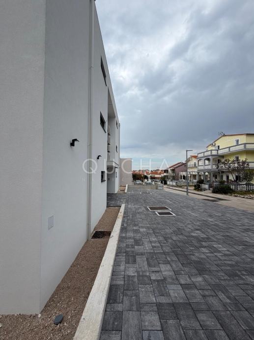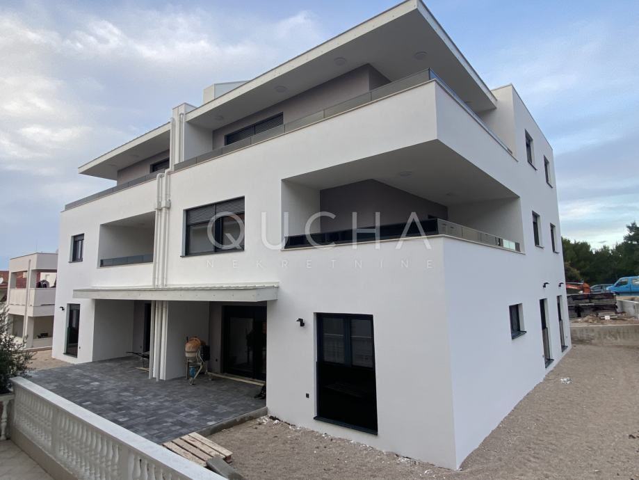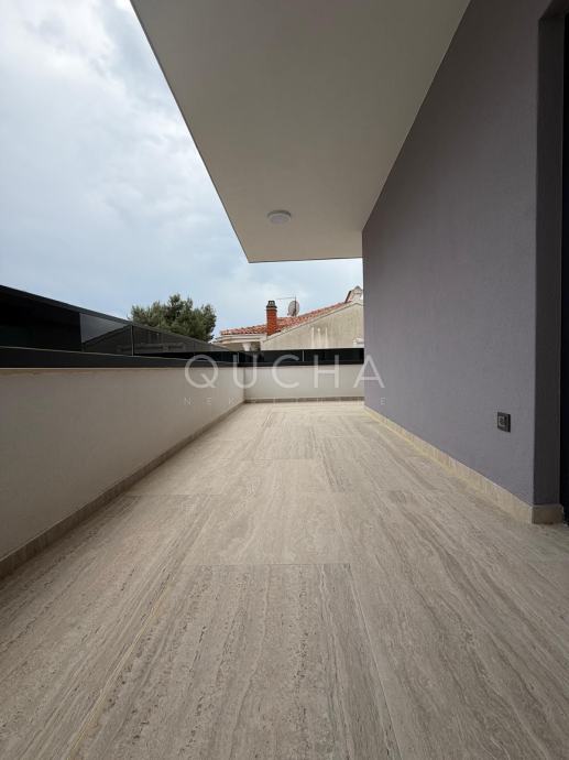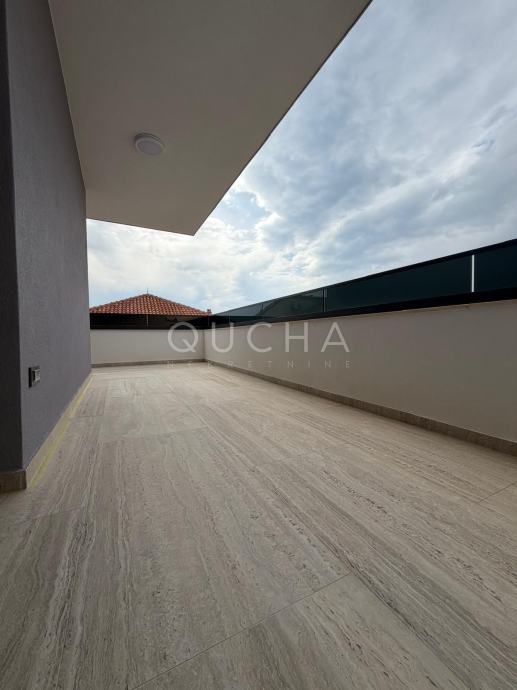 Dva dvoetažna stana od 128 m2 + terase na 1. i 2 katu zgrade i svakom stanu pripada po jedna krovna terasa na vrhu zgrade. S krovnih terasa se pruža panoramski pogled na more. Na terasama je napravljena priprema za pergolu, vanjski tuš i vanjsku ljetnu kuhinju.