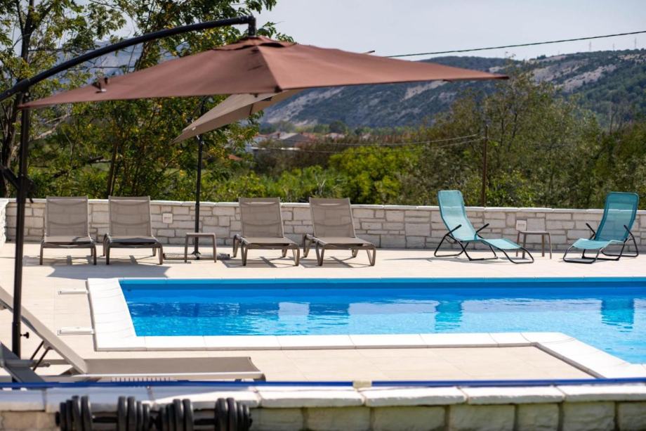 U zajedničkom dvorištu smještene su ležaljke, roštilj, dječje igralište.
